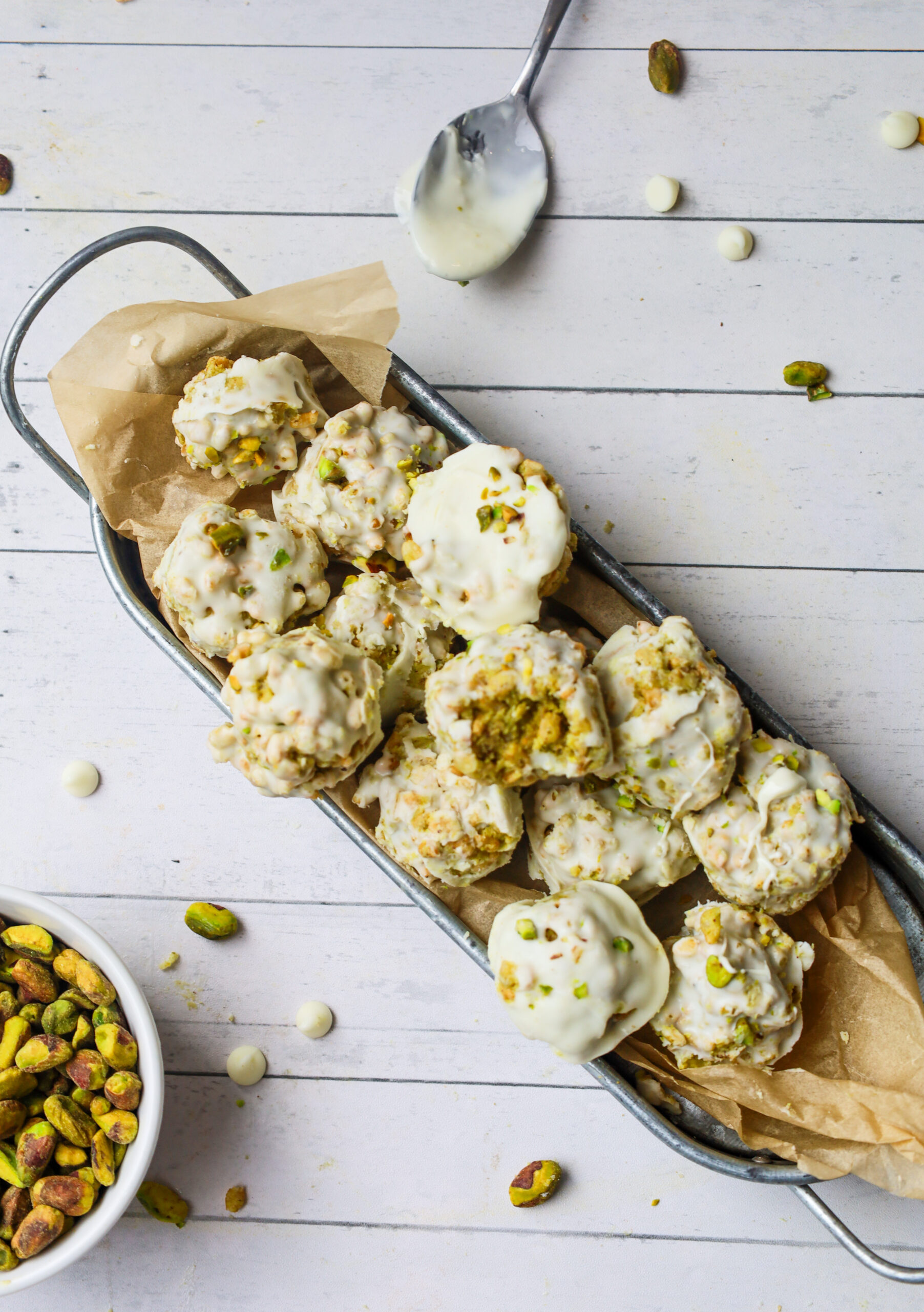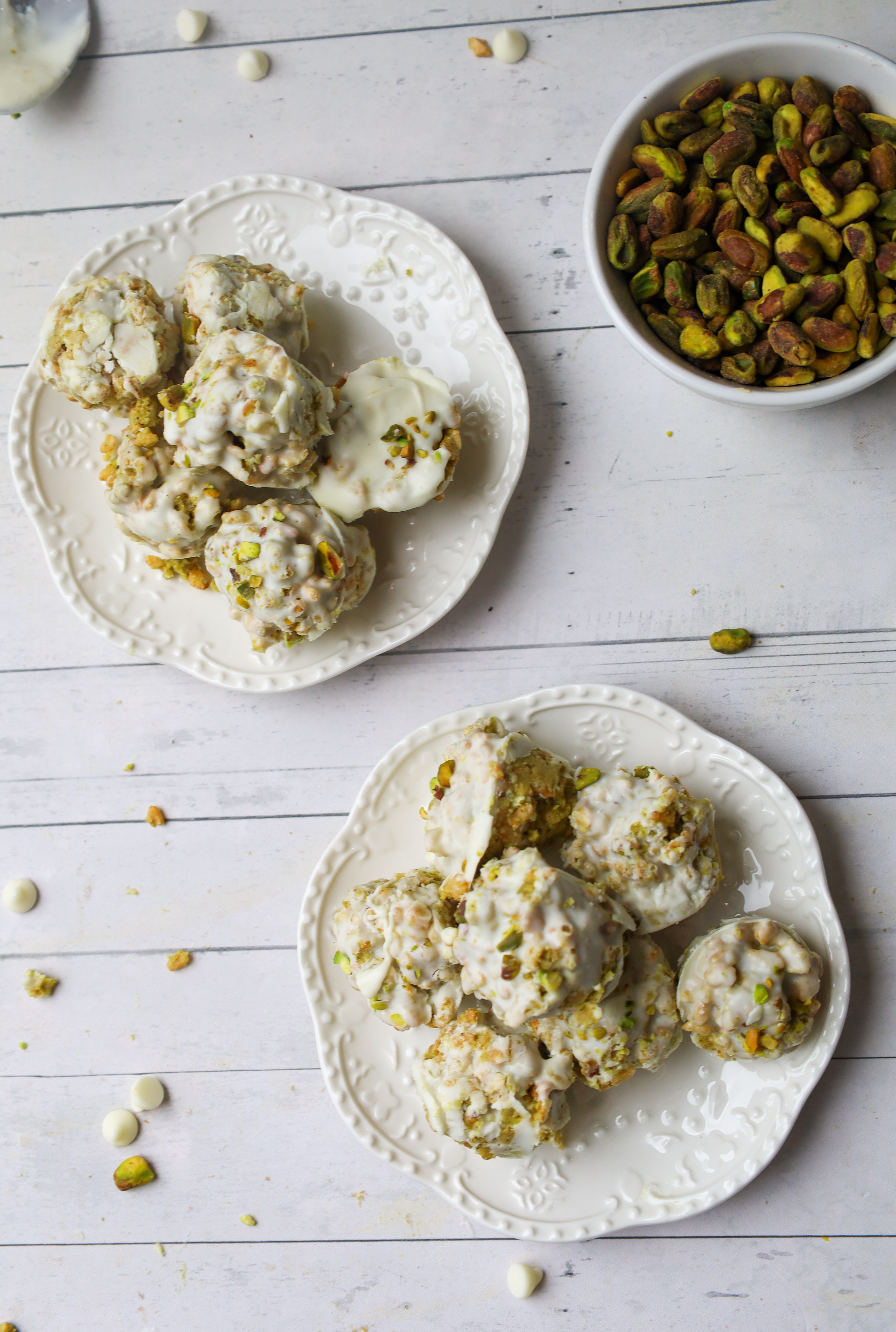 pistachio white chocolate crunch bites (gluten free, vegan option)