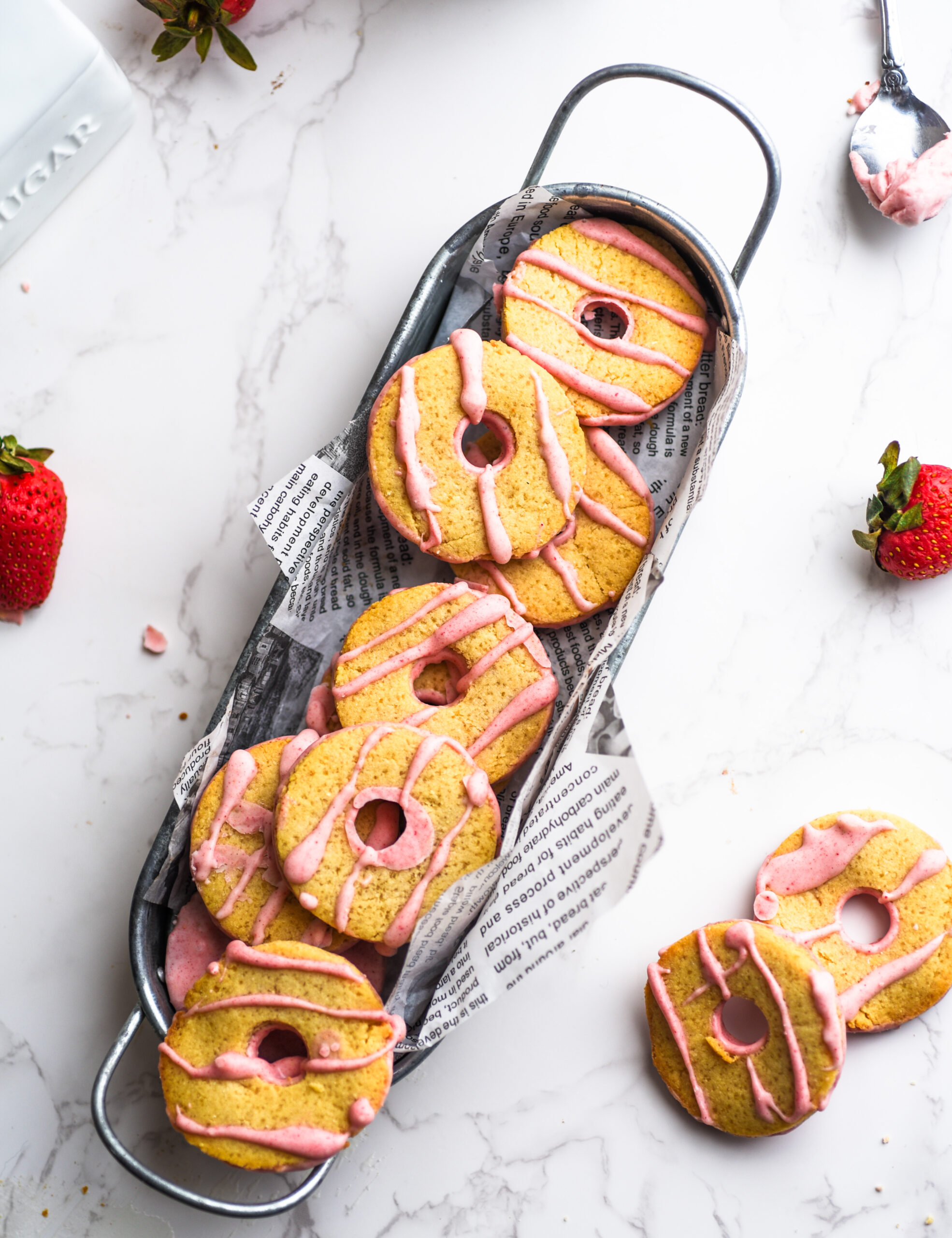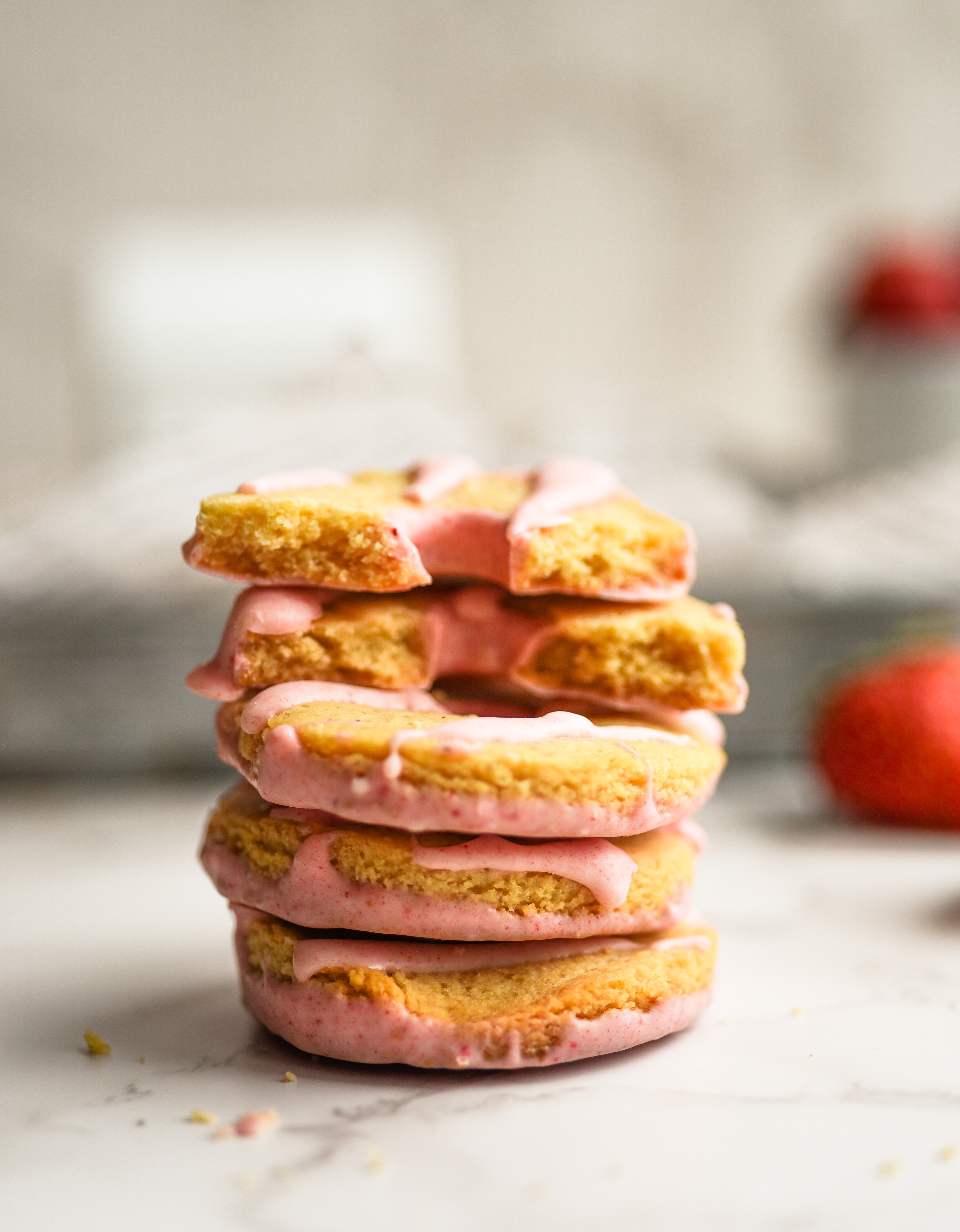 These cookies bring all the charm of Valentine’s Day with their delicate strawberry flavor and natural pink hue, thanks to freeze-dried strawberries. My husband compared the flavor to those pink frosted animal crackers we all loved as kids, and honestly? He nailed it.